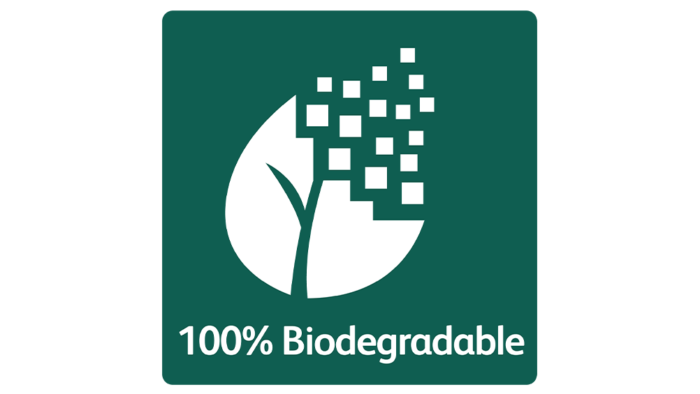 * Based on an independent OECD 301B assessment. 301B is a globally recognized aerobic biodegradation test that monitors the degree of activity of microorganisms (CO2 evolution) exposed to a material during 28 days, thus resulting in a carbon material reading and the biodegradability of the product.