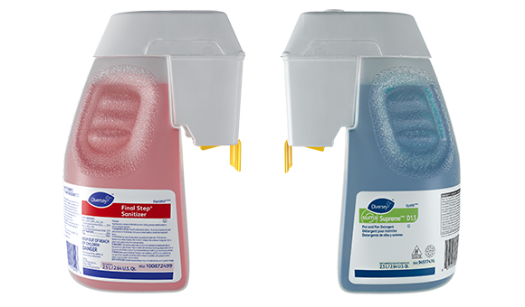 This patented dispensing system, unique to the manual warewashing market, is the only non-wall-mounted system which allows you to dispense just the right amount of chemical time and time again to consistently meet your cleaning needs in the most efficient and sustainable way possible.