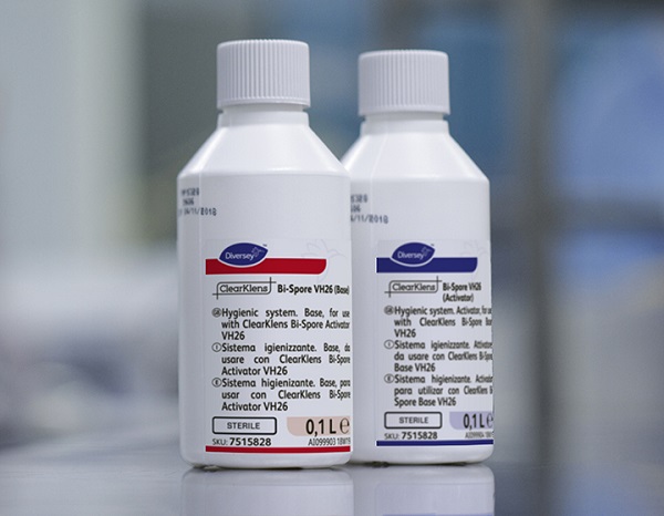 ClearKlens Bi-Spore is a rapid action, sporicidal, disinfectant designed specifically to meet the stringent criteria of pharmaceutical cleanroom disinfectants. Its two-part, single-dose pack comprises an activator and a base, ready for dilution, to generate chlorine dioxide in aqueous solution.