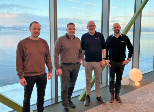Fra venstre: Kato Lund (teknisk sjef) og Børge Holm (daglig leder) fra Holmøy, samt John Hjalmar Johansen (salgskonsulent) og Rasmus Selseth (kommersiell direktør) i Lilleborgs avdeling for næringsmiddelindustri.