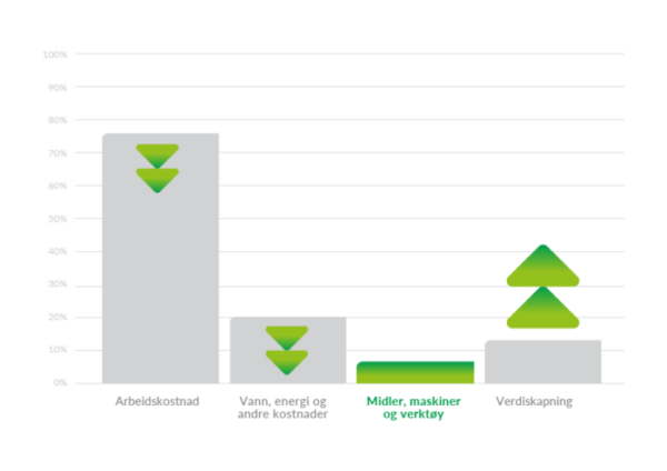 Ved å se på renhold som en helhet vil din bedrift kunne oppnå reduserte kostnader. I de aller fleste bedrifter er største kostnad relatert til renhold arbeidskost. Ved å effektivisere selve renholdet og i noen tilfeller endre på produktene man benytter til rengjøringen kan denne kostnaden reduseres sammen med kostnaden for vann, energi og eventuelle andre kostnader.