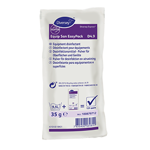 Pó desinfetante clorado para superfícies rígidas, equipamentos e utensílios, máquinas de servir refrigerantes e shakes. O Suma Equip San EasyPack D4.9 é um pó concentrado, muito eficaz como desinfetante para uso em todas as superfícies de contato com alimentos e não alimentos que requerem desinfecção.