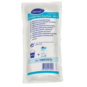 O Suma Floor EasyPack D2.5 é um produto de limpeza altamente concentrado e de baixa espuma para pisos rígidos resistentes à água, adequado para aplicações de esfregão, assim como para o uso em lavadoras-secadoras.