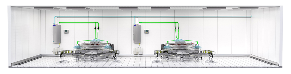 Os sistemas OPC automatizados são adequados para a limpeza e a higienização de grandes instalações de produção com unidades de produção móveis e complexas, como enchedoras em carrossel, transportadoras de correia, transportadores basculantes, congeladoras em espiral, resfriadoras em espiral, tambores de tempero, aparadores de tambor, entre muitos outros equipamentos. Em uma instalação OPC automatizada, a espuma de limpeza e o higienizante são aplicados por meio de um coletor personalizado, feito para encaixar e alcançar cada peça do equipamento, garantindo que até os pontos mais difíceis de alcançar sejam atendidos durante o processo de limpeza e higienização.