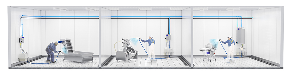 Temos uma linha completa de equipamentos de Open Plant Cleaning para fornecer distribuição, diluição e aplicação ideais de detergentes de espuma, desinfetantes e enxágues em toda a sua instalação. Nossas soluções foram projetadas higienicamente e podem ser selecionadas para atender aos requisitos específicos locais e orçamentários.